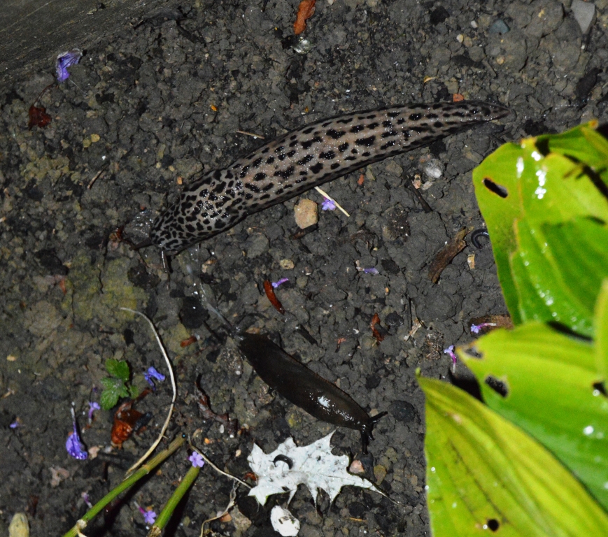 But then, sometime last year, I started to notice a few rather distinctive (and very large) slugs cruising confidently around the garden after dark. Something clicked, and I decided to take a chance and spare them (or maybe it was just because they scared me!)  I don’t think I ever saw them actively eating plants, and I really hope they don’t, because I dread to think how much plant material it would take to satisfy their appetites. I think I saw one attacking another slug, but I couldn’t be sure – it wasn’t the kind of ferocious kill that would make good prime time TV. David Attenborough might well not have been able to stay awake for long enough to complete the commentary.